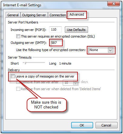 and that the "Leave a copy of messages on the server" box is left unchecked.