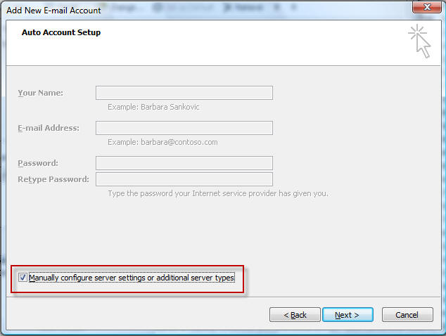 Use the "Manually Configure" option on your phone's email setup procedure, and skip to Step 4 below.